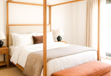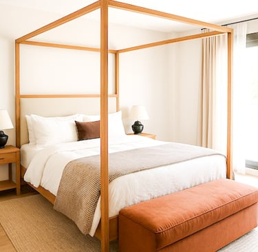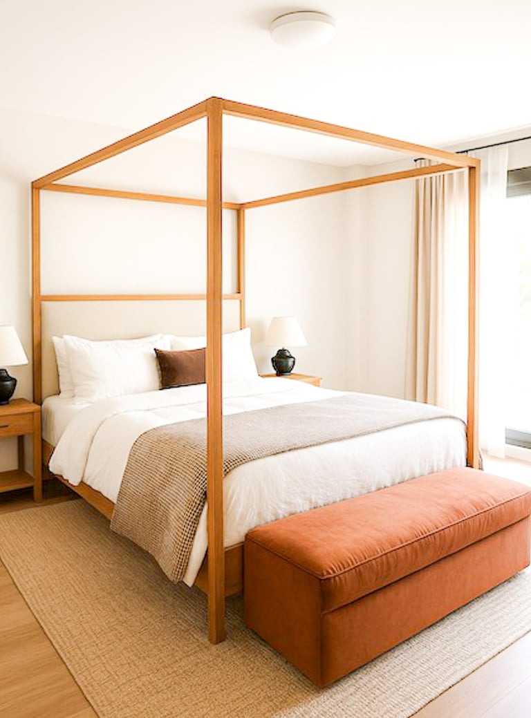 Formas orgánicas y minimalismo cálido, alineados con las tendencias de lujo para 2025.